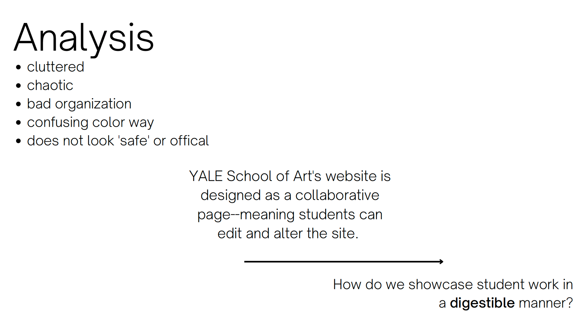 OBJECTIVE: Analyze the user experience associated with the YALE School of Art website and propose design changes